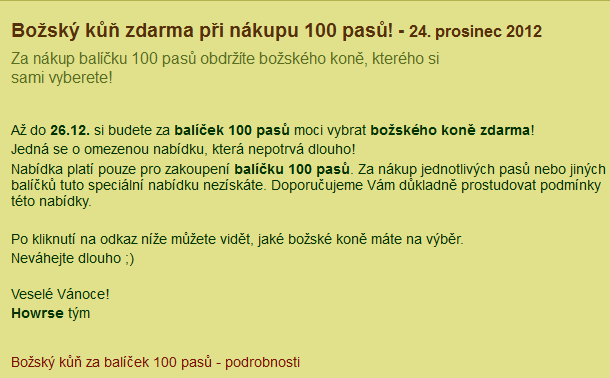 Božský kůň za balíček 100 pasů - podrobnosti